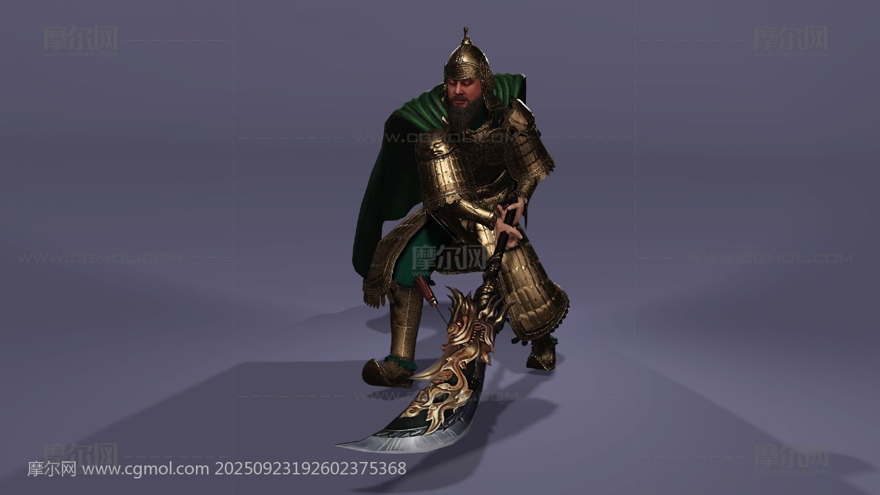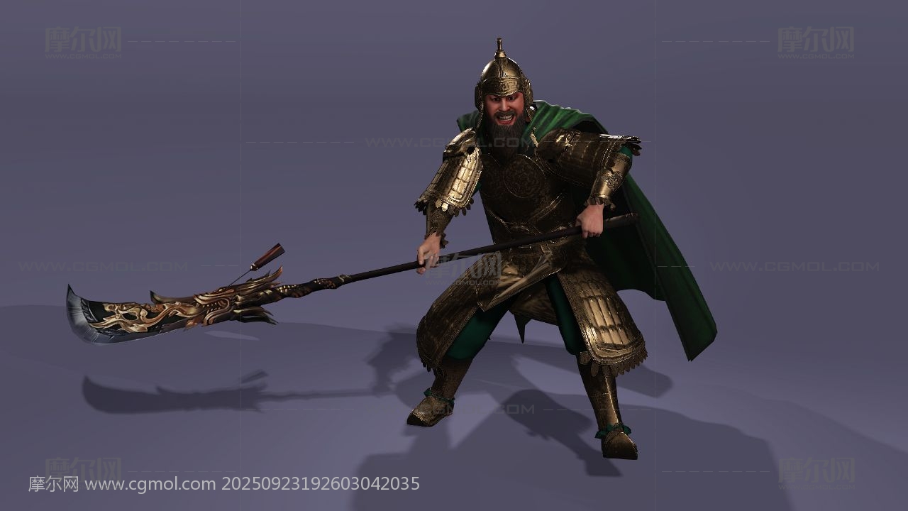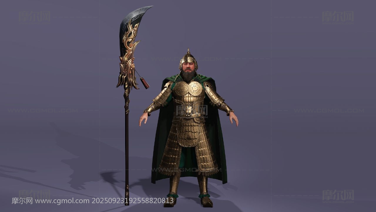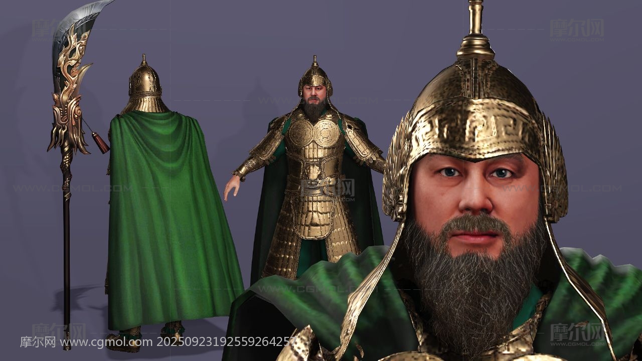 三国演义 关羽 云长 关公 关二爷 美髯公 武圣人 青龙偃月刀 古代武将 盔甲猛将 冷艳锯 电影人物 写实人物 cosplay 胡子大叔 胡子男 男人 max maya obj fbx stl blender