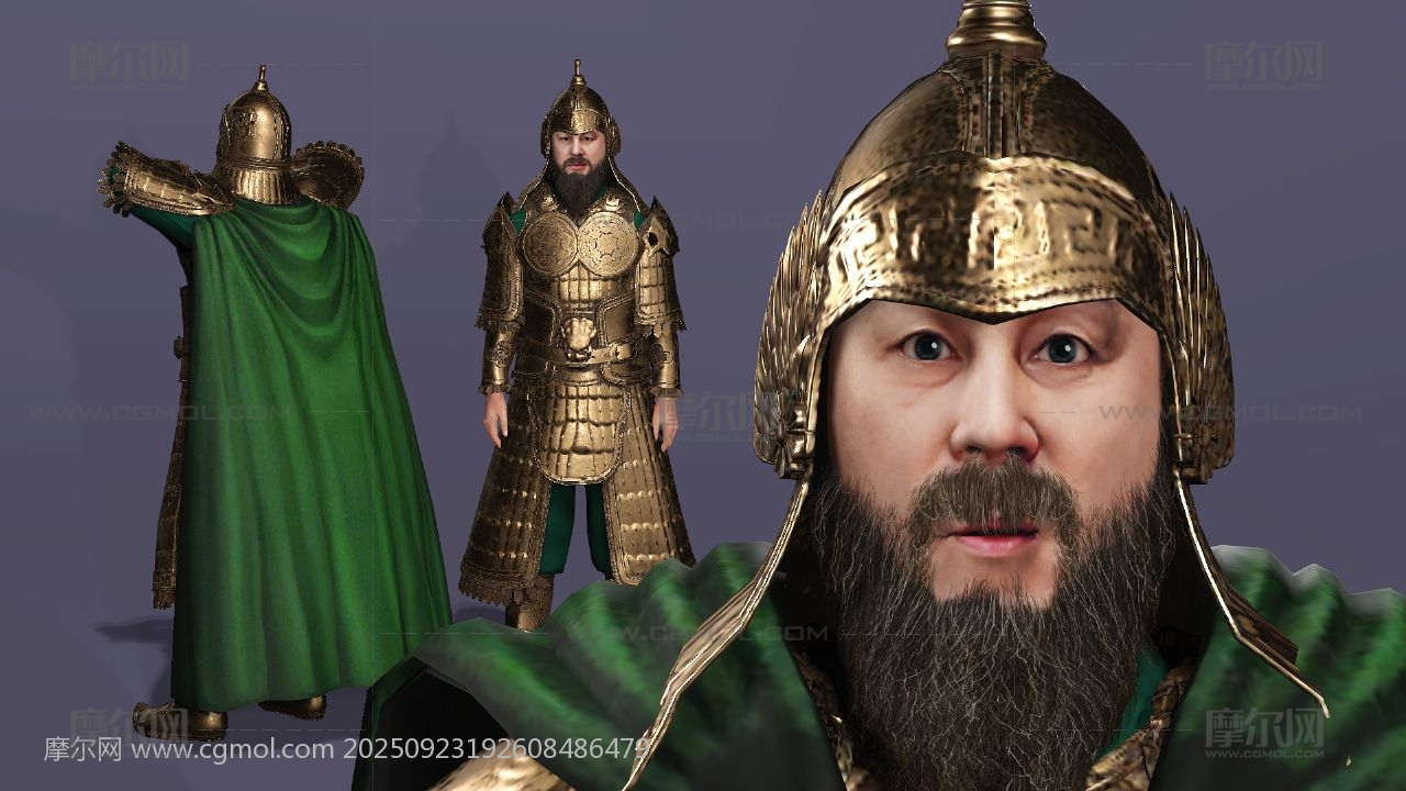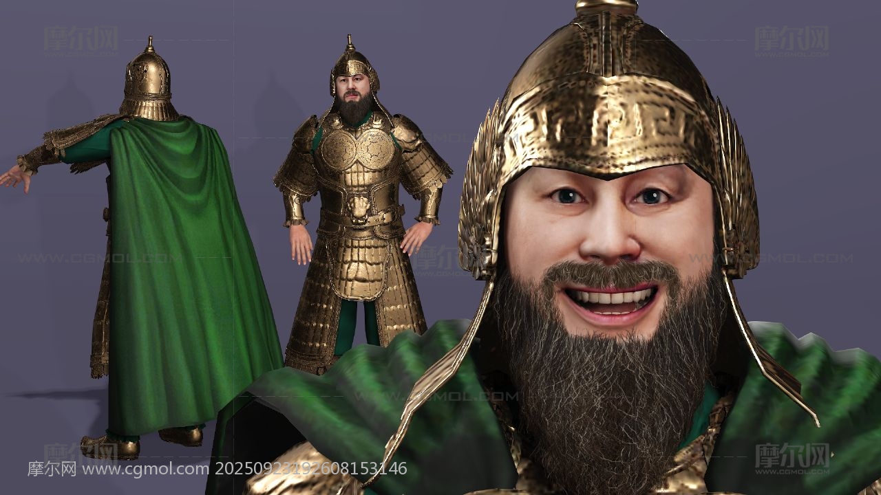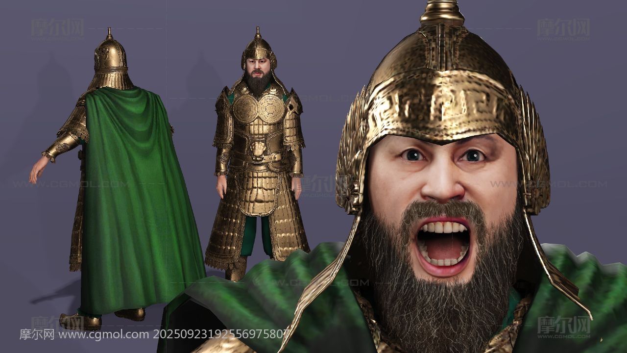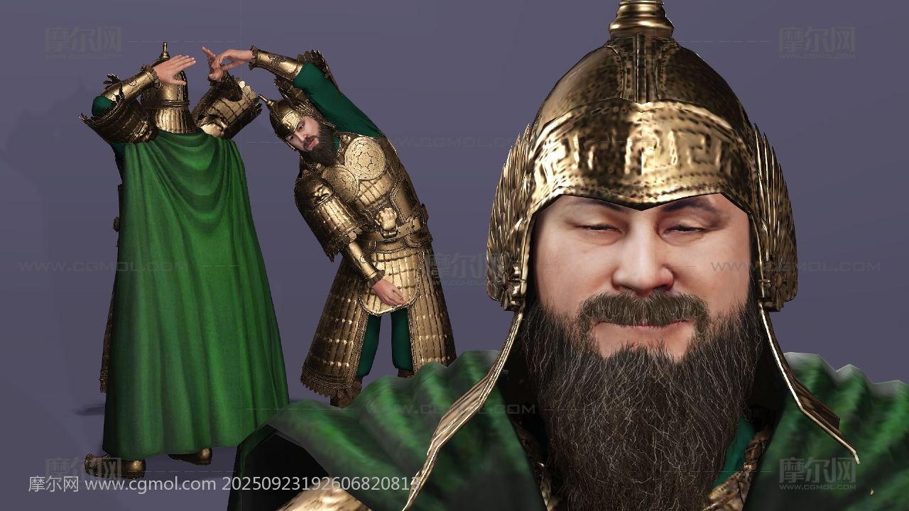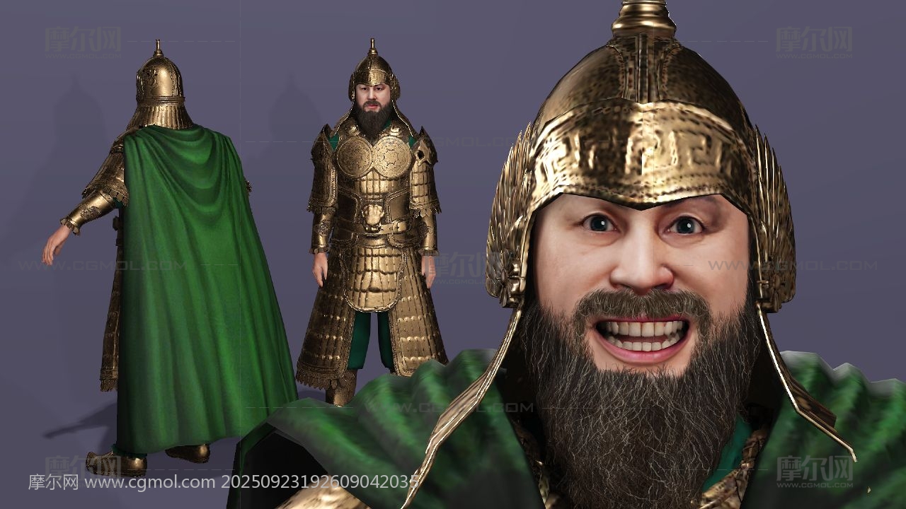 三国演义 关羽 云长 关公 关二爷 美髯公 武圣人 青龙偃月刀 古代武将 盔甲猛将 冷艳锯 电影人物 写实人物 cosplay 胡子大叔 胡子男 男人 max maya obj fbx stl blender