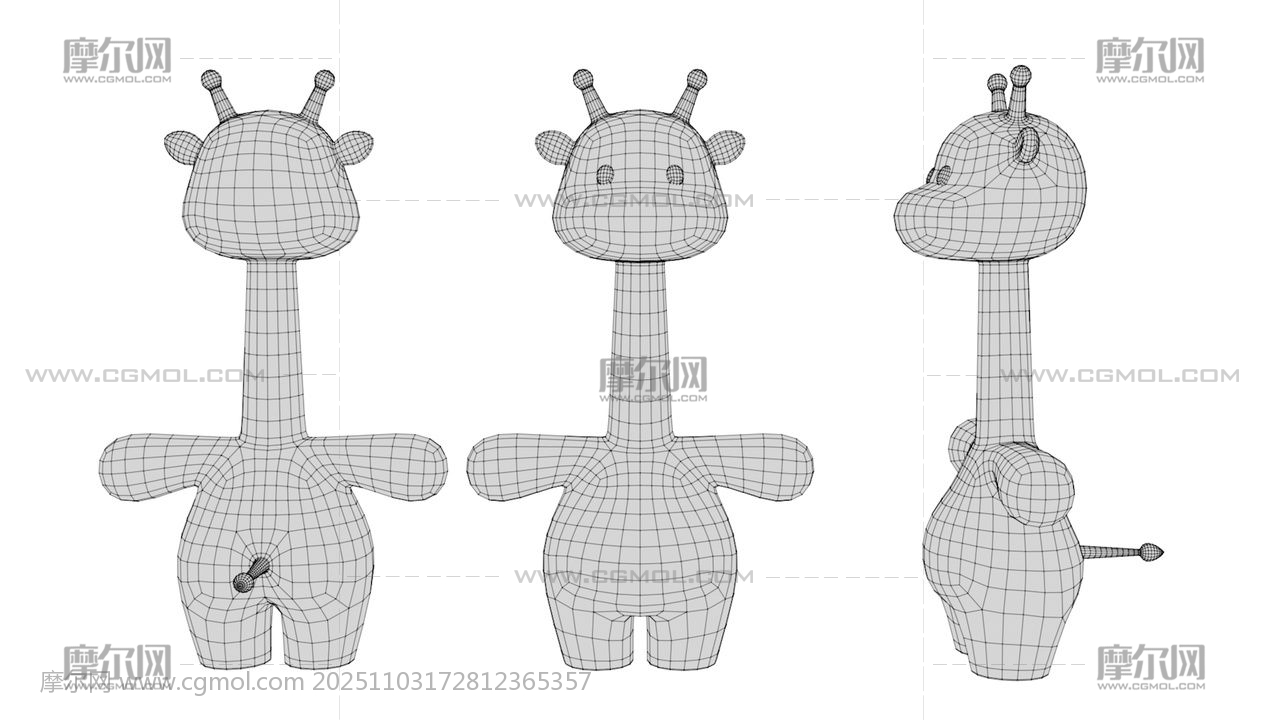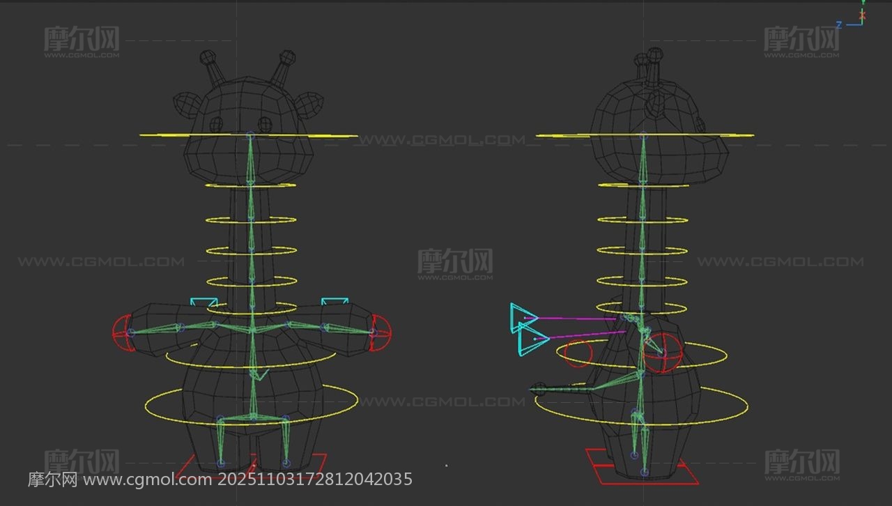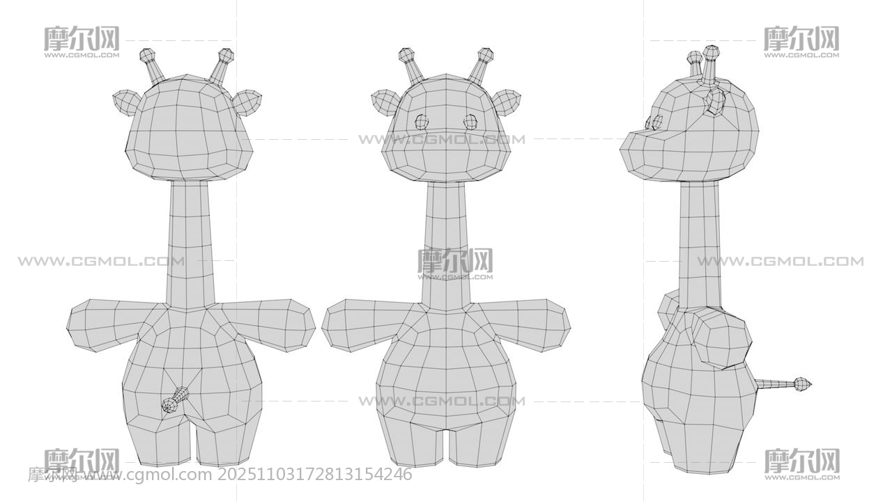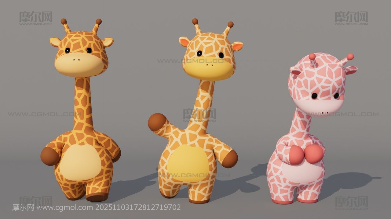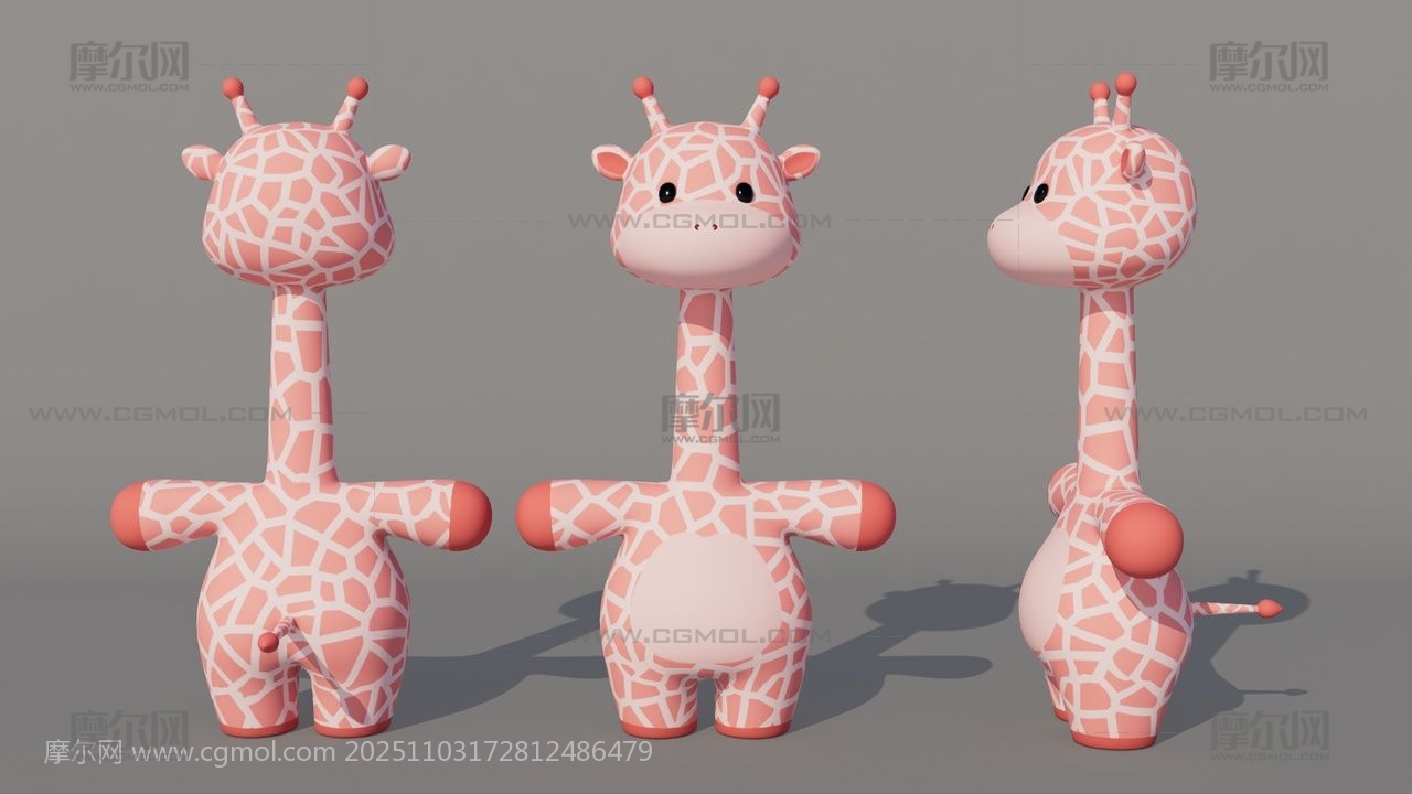 卡通长颈鹿 Q版长颈鹿 拟人长颈鹿 卡通动物 卡通角色 绑定 C4D FBX