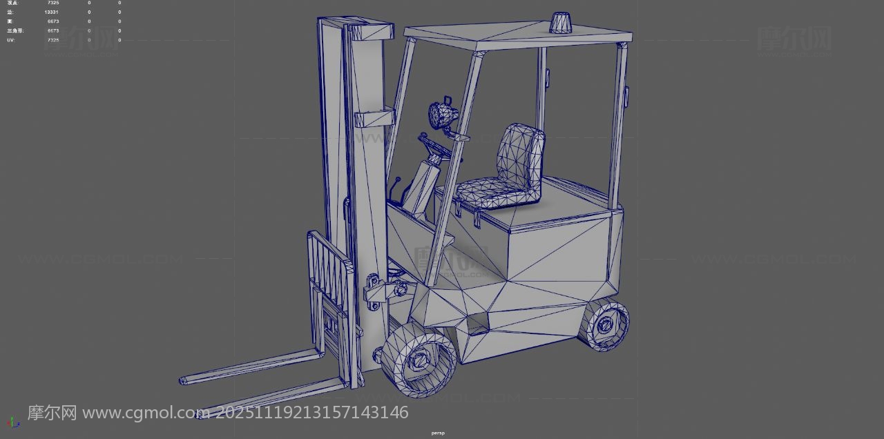 马路上行驶的叉车场景C4D模..