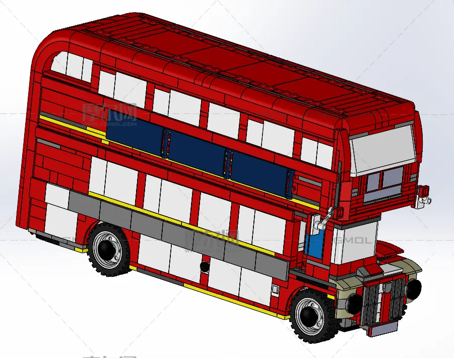 伦敦双层巴士 积木巴士 积木玩具 积木汽车 儿童玩具 stp solidworks