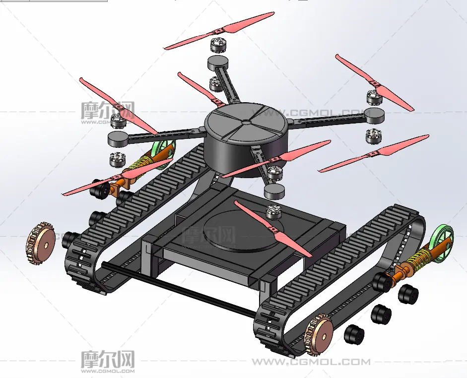 履带无人机 两栖飞行器 军事装备 军事武器 solidworks