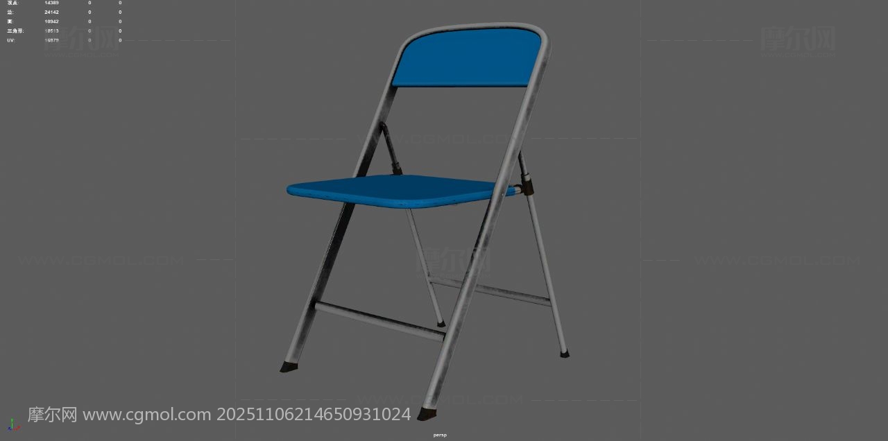 金属折叠椅子 折叠椅 休闲椅子 休闲家具 会议椅子 凳子 max maya fbx obj
