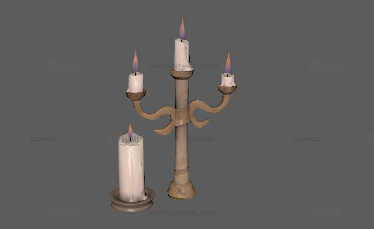 烛台 蜡烛 烛灯 灯台 黄金烛台 古董铜灯 照明道具 场景素材 max maya fbx obj