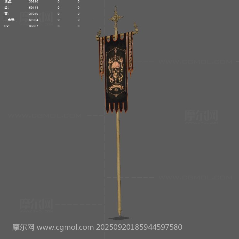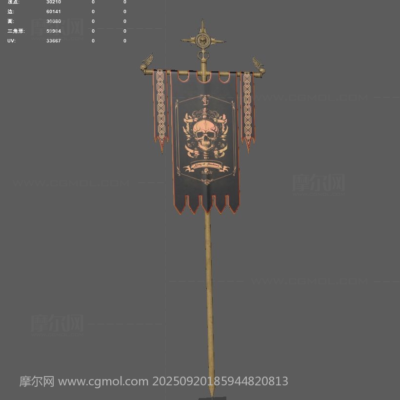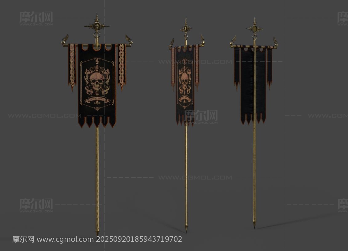 骷髅旗 游戏旗帜 妖怪族旗帜 游戏道具 帅旗 maya fbx