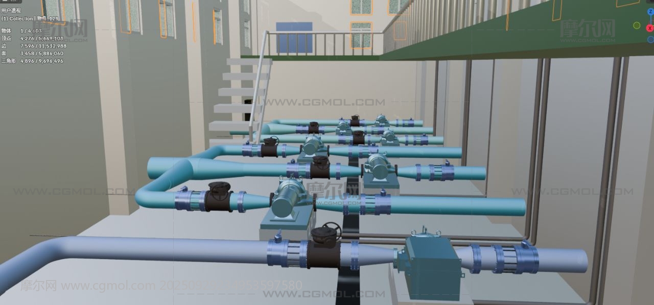水厂泵站 供水泵房 水厂设备 水厂设施 blender fbx obj