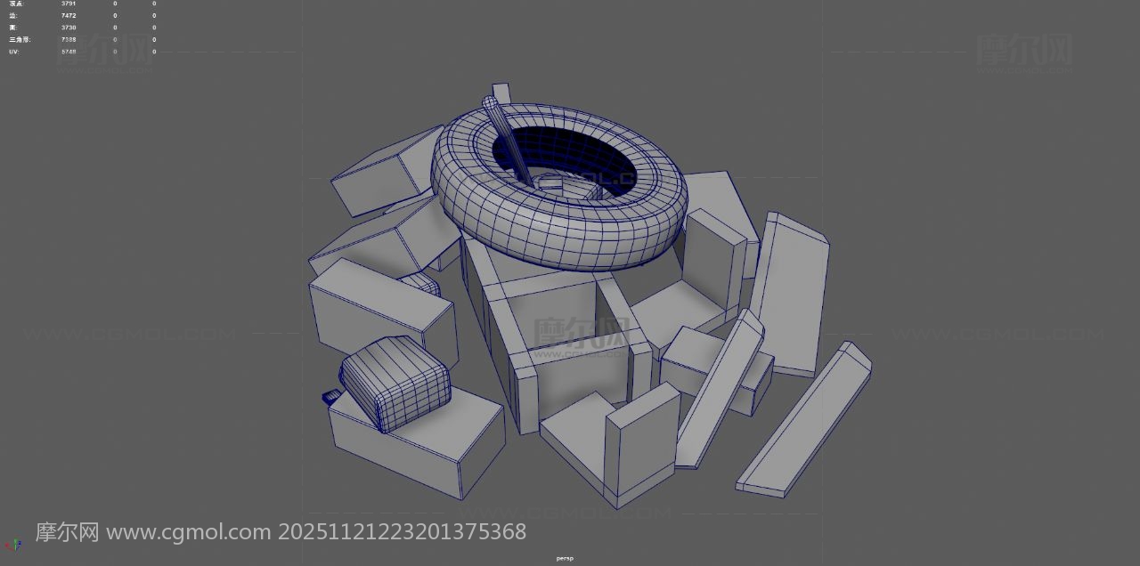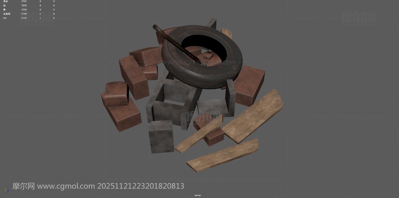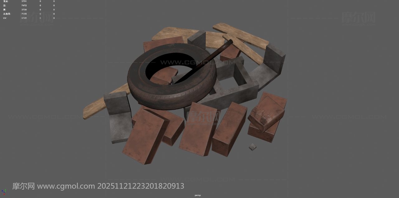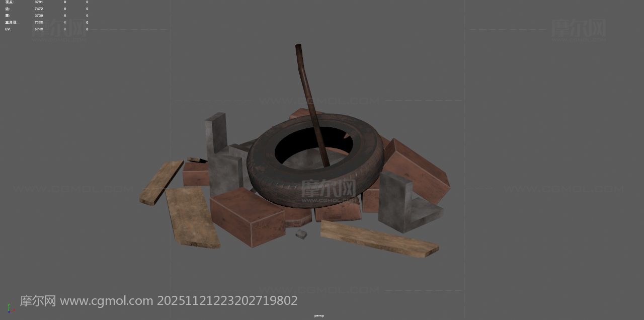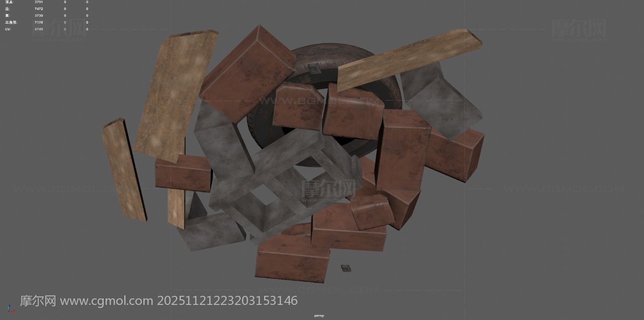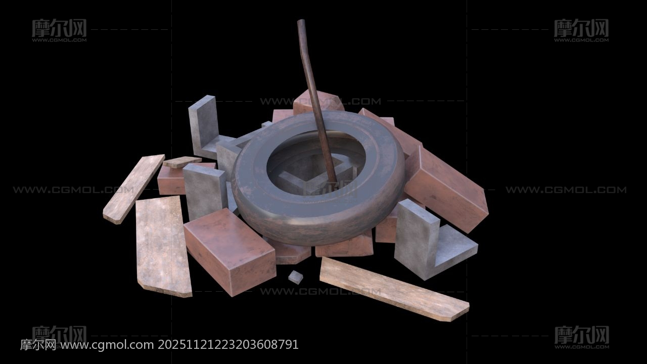 工地废墟 砖块 垃圾堆 破木板 石碓 工地乱砖头 废墟 max maya fbx obj 破轮胎