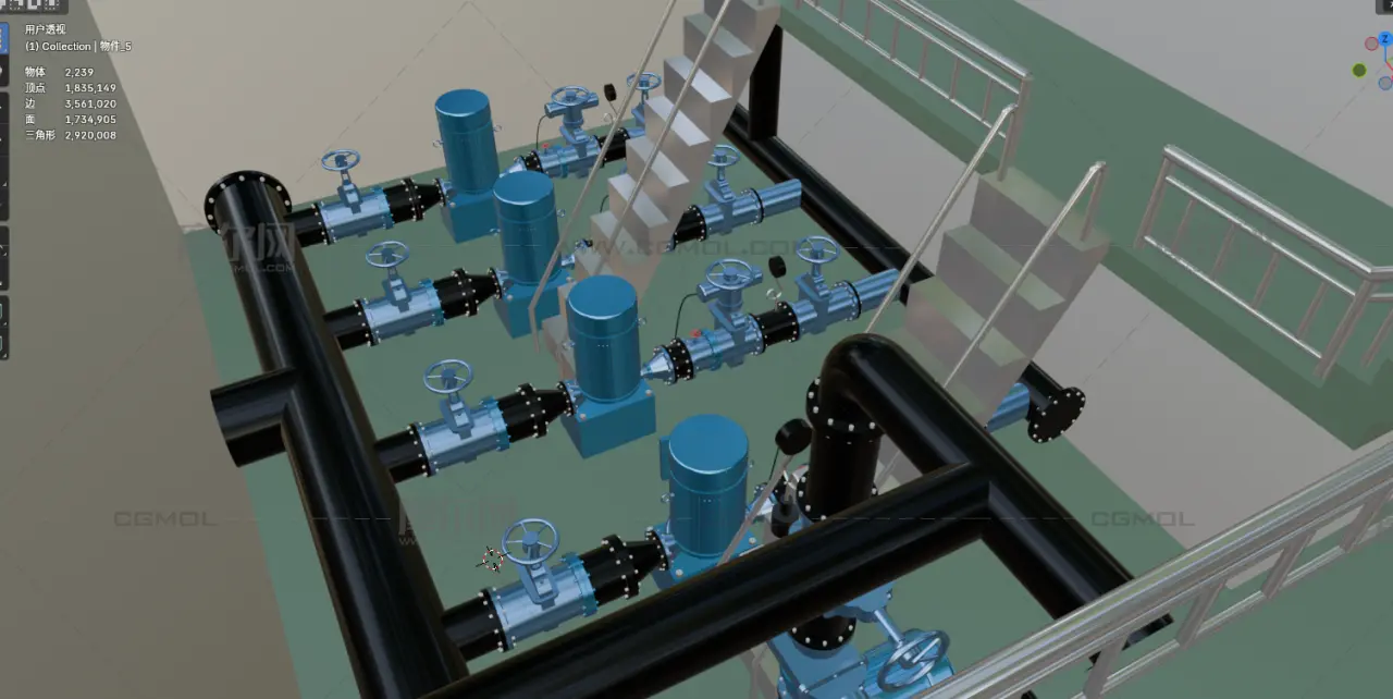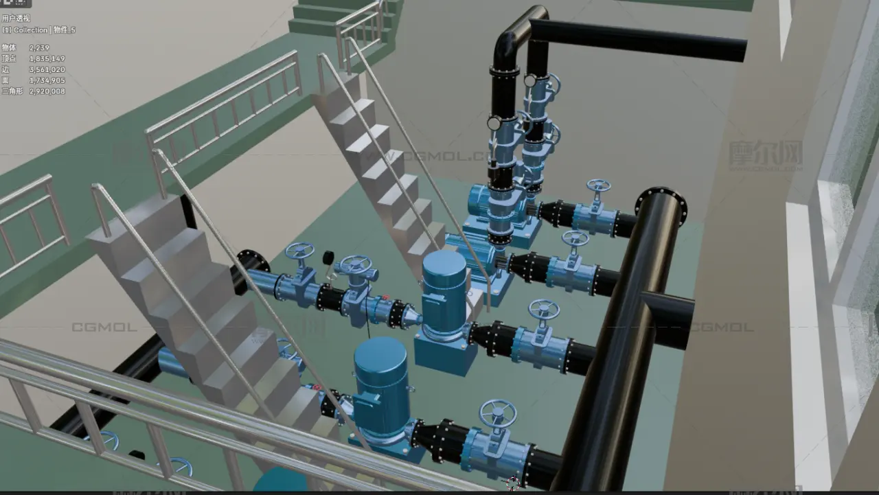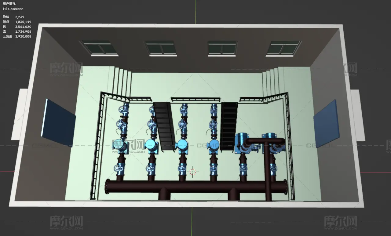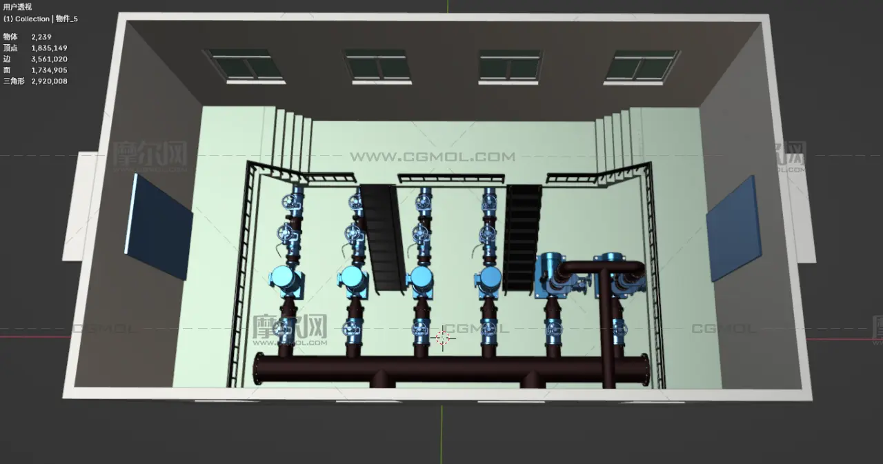 水厂供水泵房 水厂消毒车间 水厂设备 机械设备 工业设备 blender fbx obj