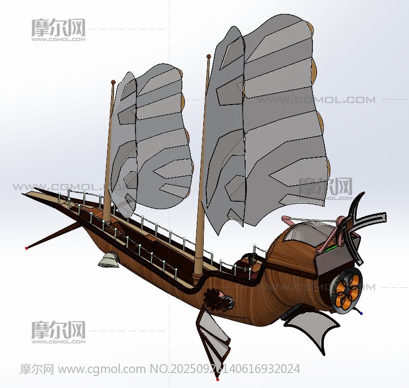汤米蒸汽朋克飞艇 交通工具 未来飞行器 solidworks
