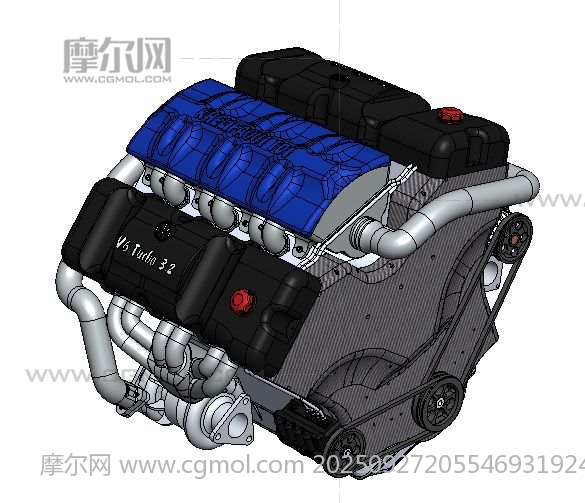 V6双涡轮增压发动机 涡轮增压引擎 V6发动机 solidworks