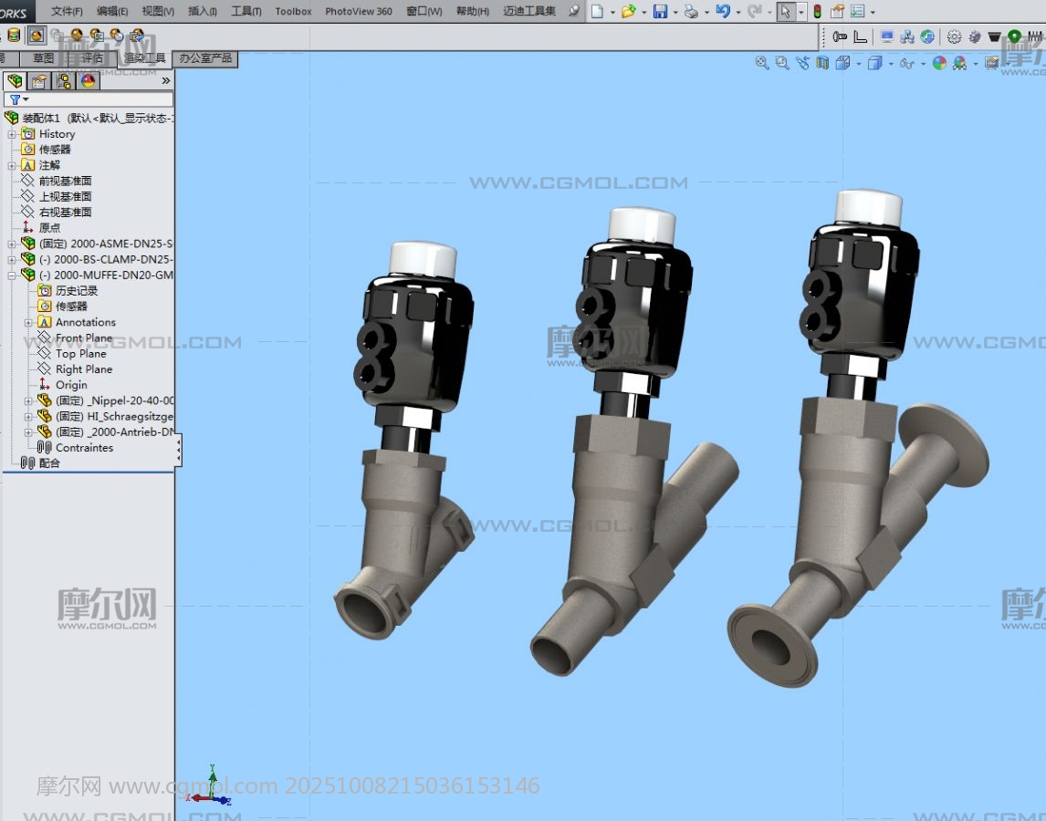 Y型气动角座阀 机械设备 工业设备 solidworks 机械零件