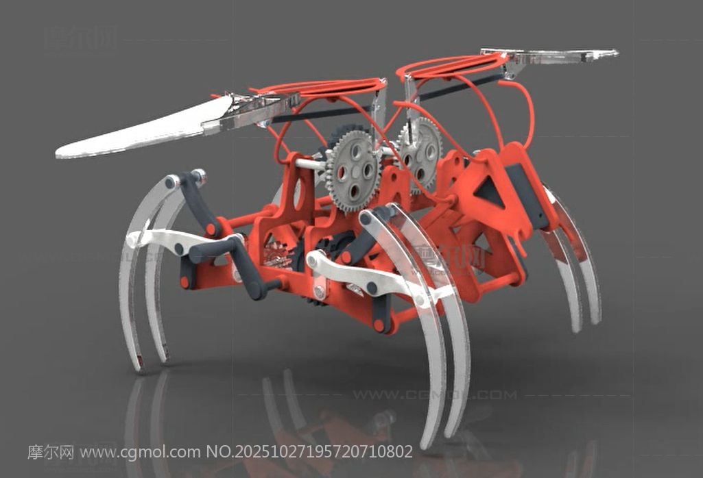 飞行蜘蛛 四足机器人 飞行昆虫机械 仿生昆虫 仿生动物 stp 3dm skp rhino sketchup 飞行器 无人机
