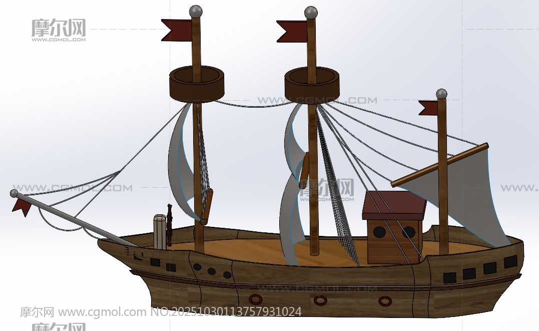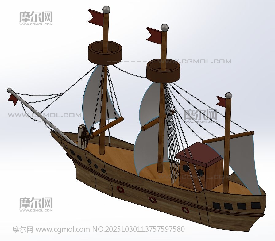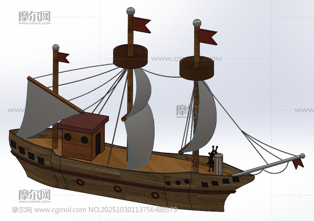 海盗船 帆船 船只 solidworks 中世纪商船 摆件 装饰品