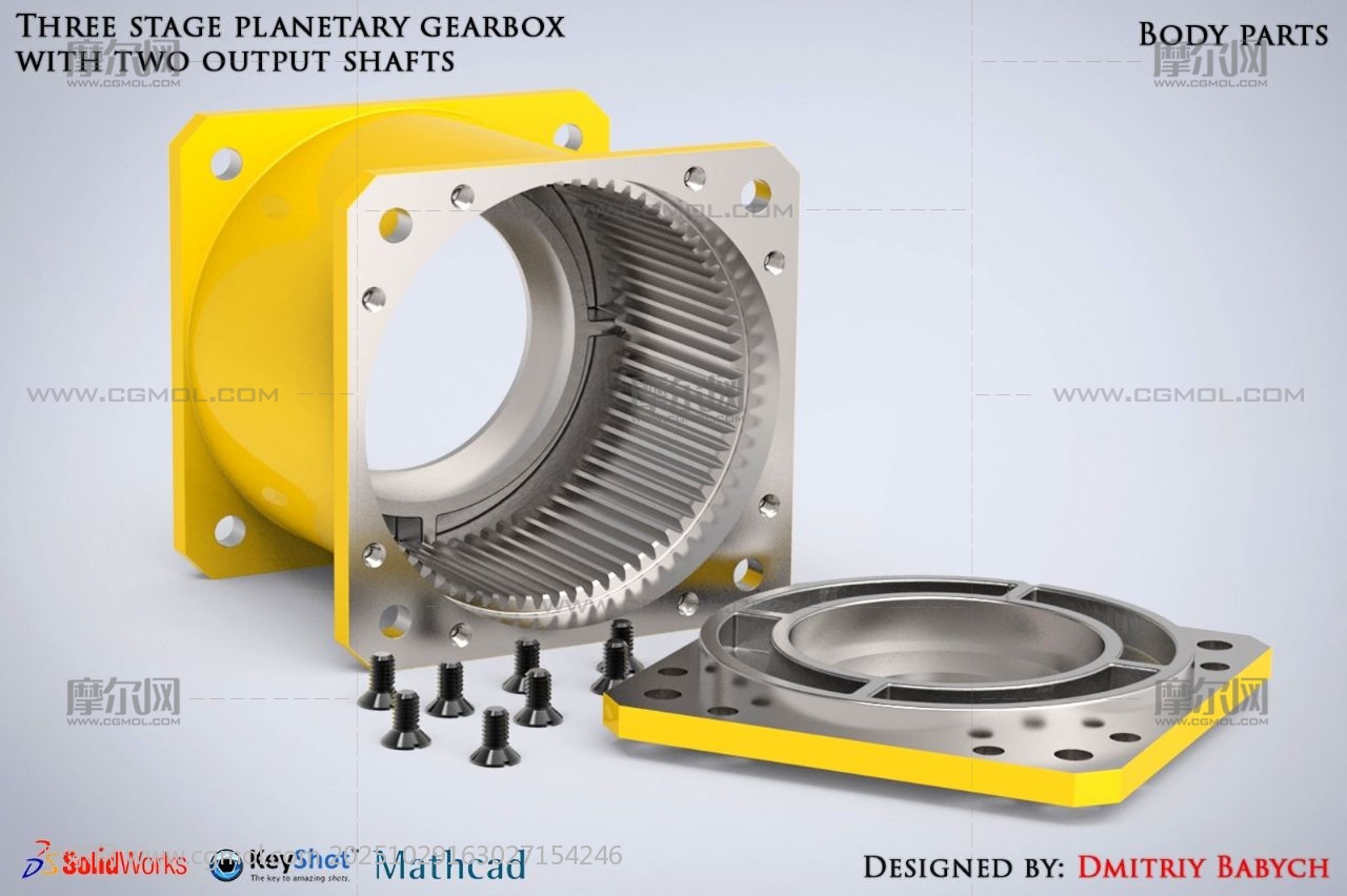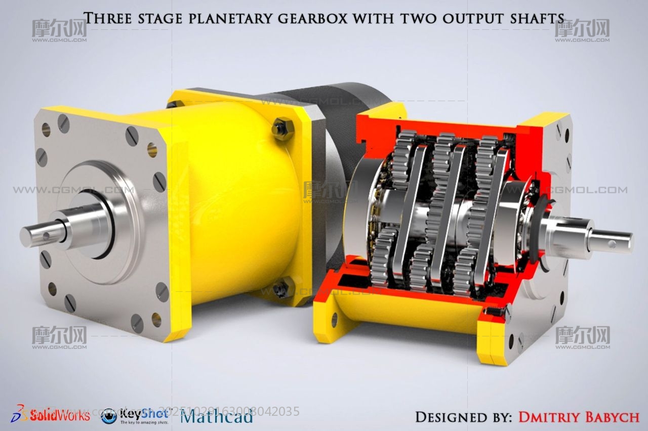 三级行星齿轮减速电机 机械设备 电器设备 工业设备 solidworks