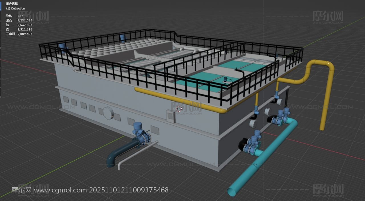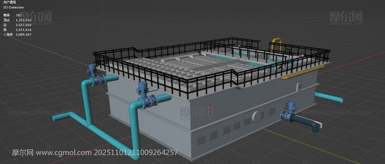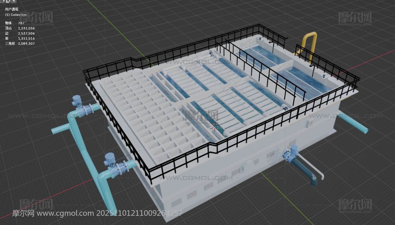 水厂一体化滤池净水池 水厂设备 机械设备 工业设备 blender fbx obj
