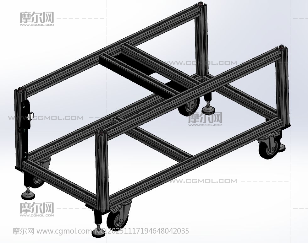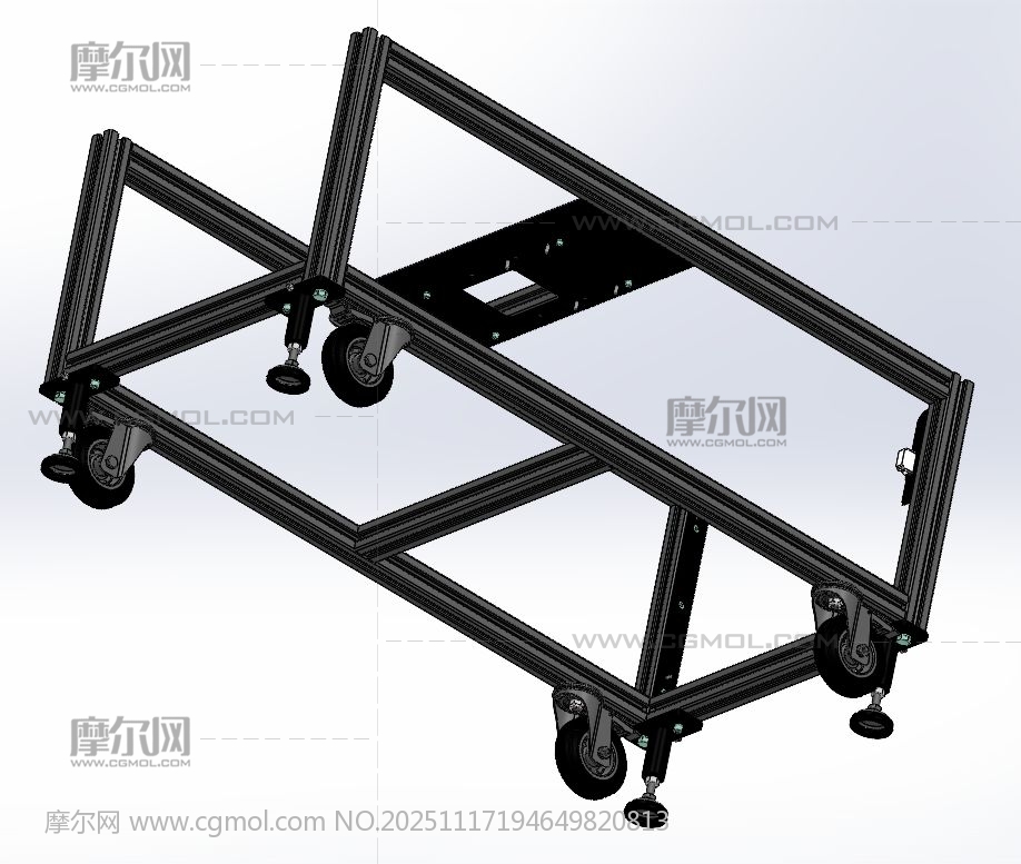 四轮推车 车架 铝型材模块化装配推车 机械设备 工业设备 solidworks stp 移动工具车