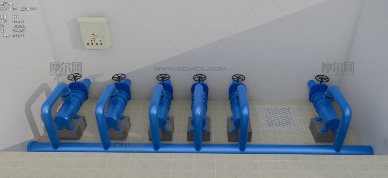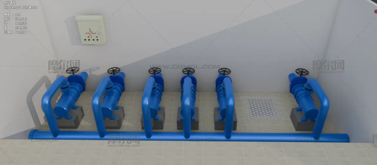 水厂泵站 供水泵房 机械设备 工业设备 blender fbx obj