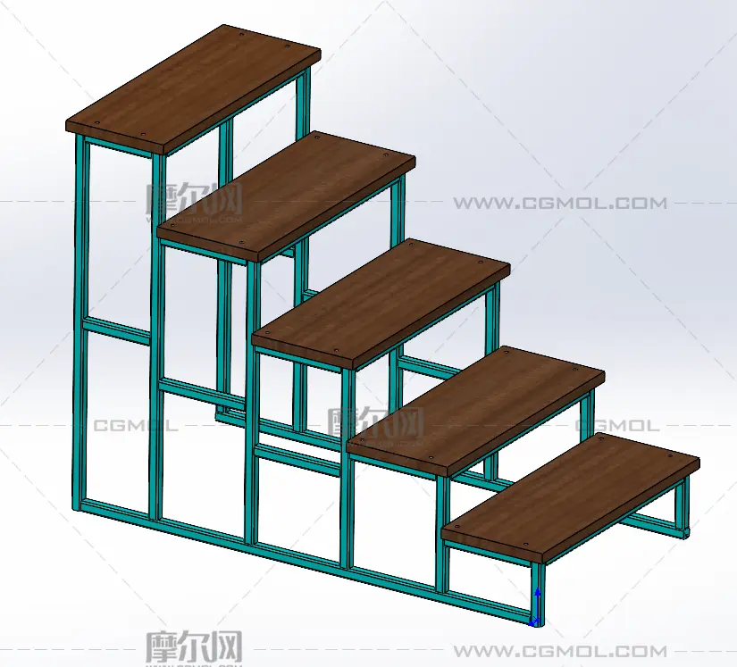 焊件踏步架子 移动式楼梯 增高梯 机械设备 工业设备 solidworks
