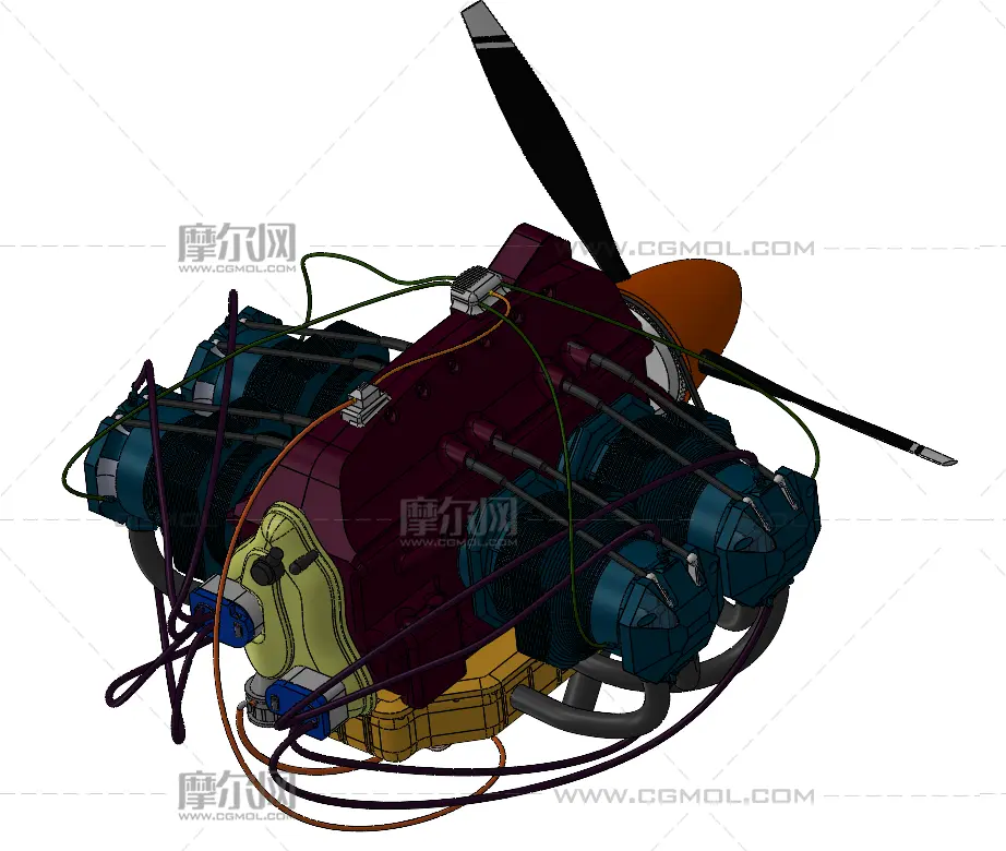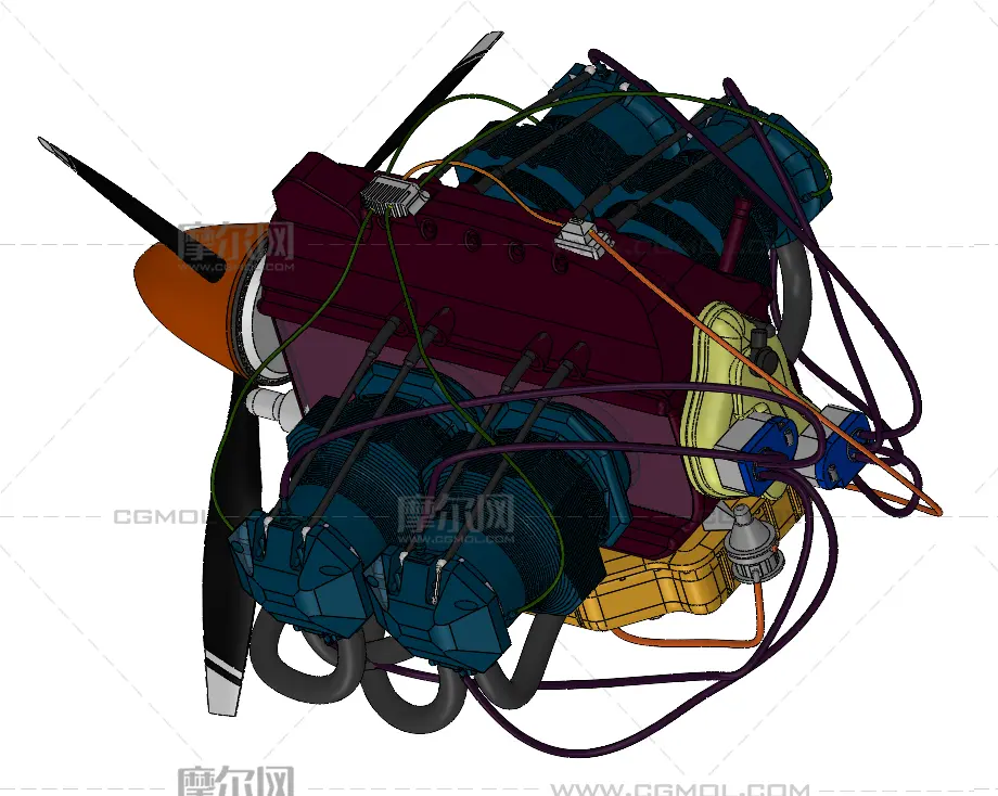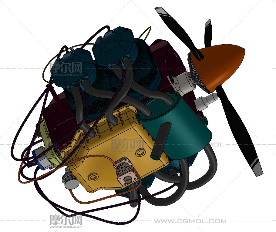 扁平四缸发动机 飞机发动机 飞机引擎 solidworks