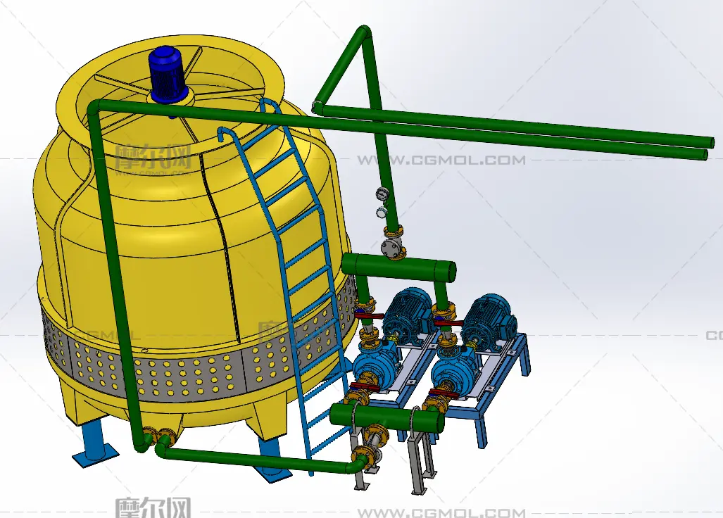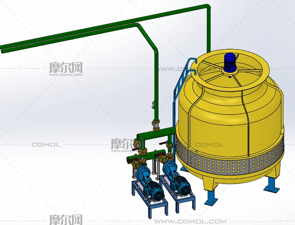 圆形冷却塔系统 机械设备 工业设备 solidwork