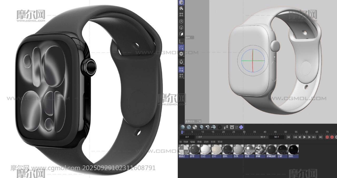 苹果Apple Watch 11 智能手表,渲染完,含贴图
