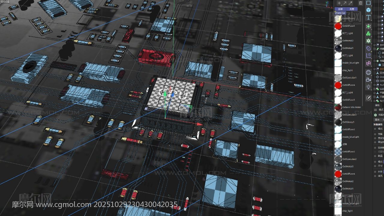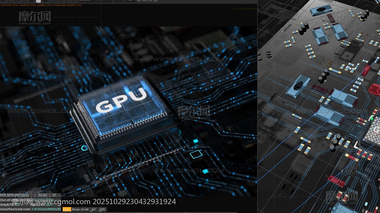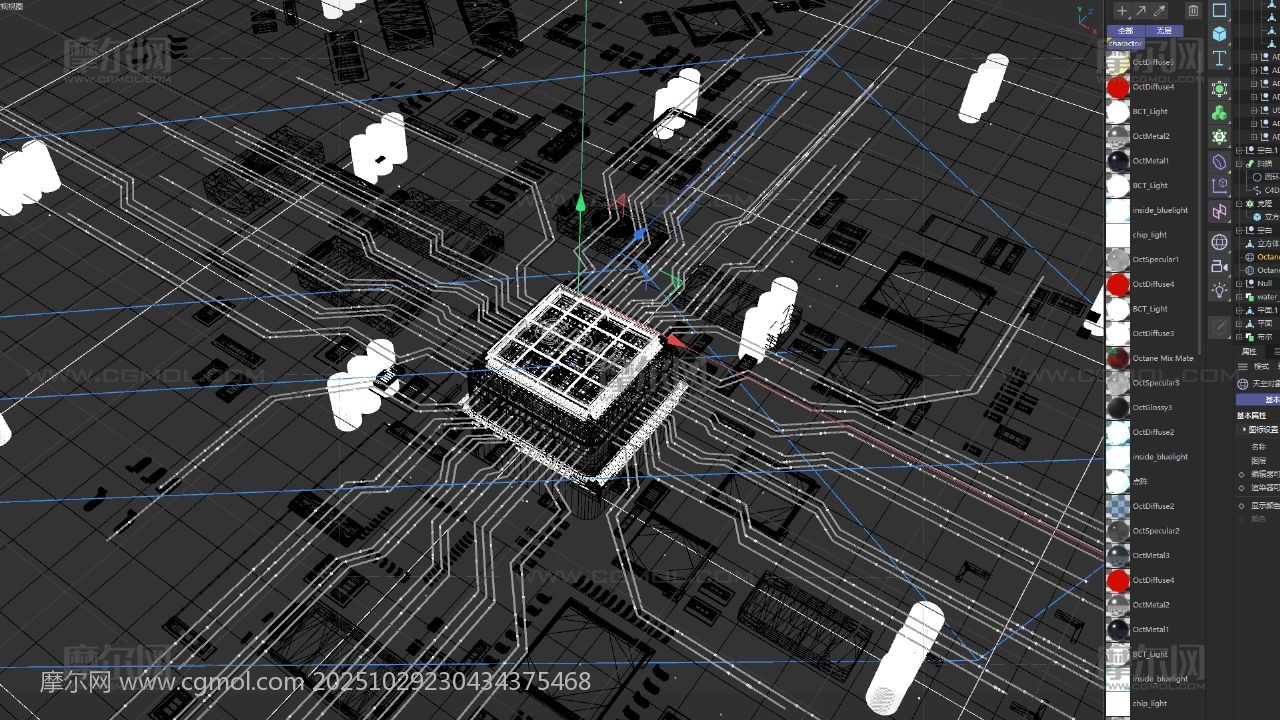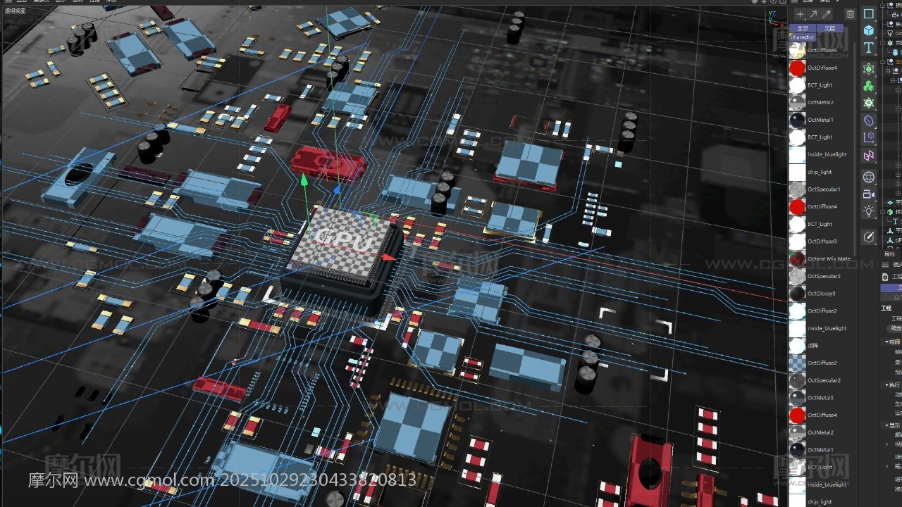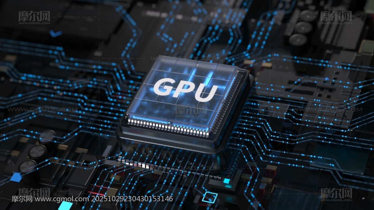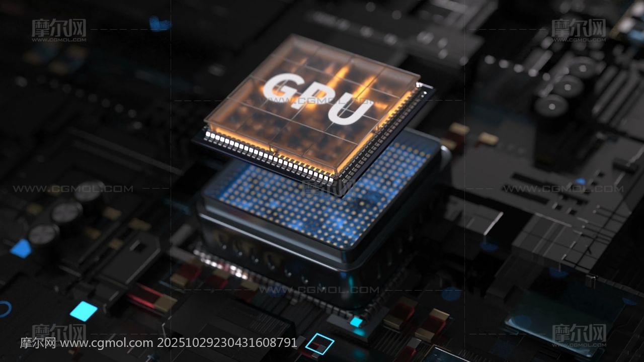 科技感LOGO 芯片AI 元件C4D 电路板 电流 GPU内部结构 AI算力 电商海报