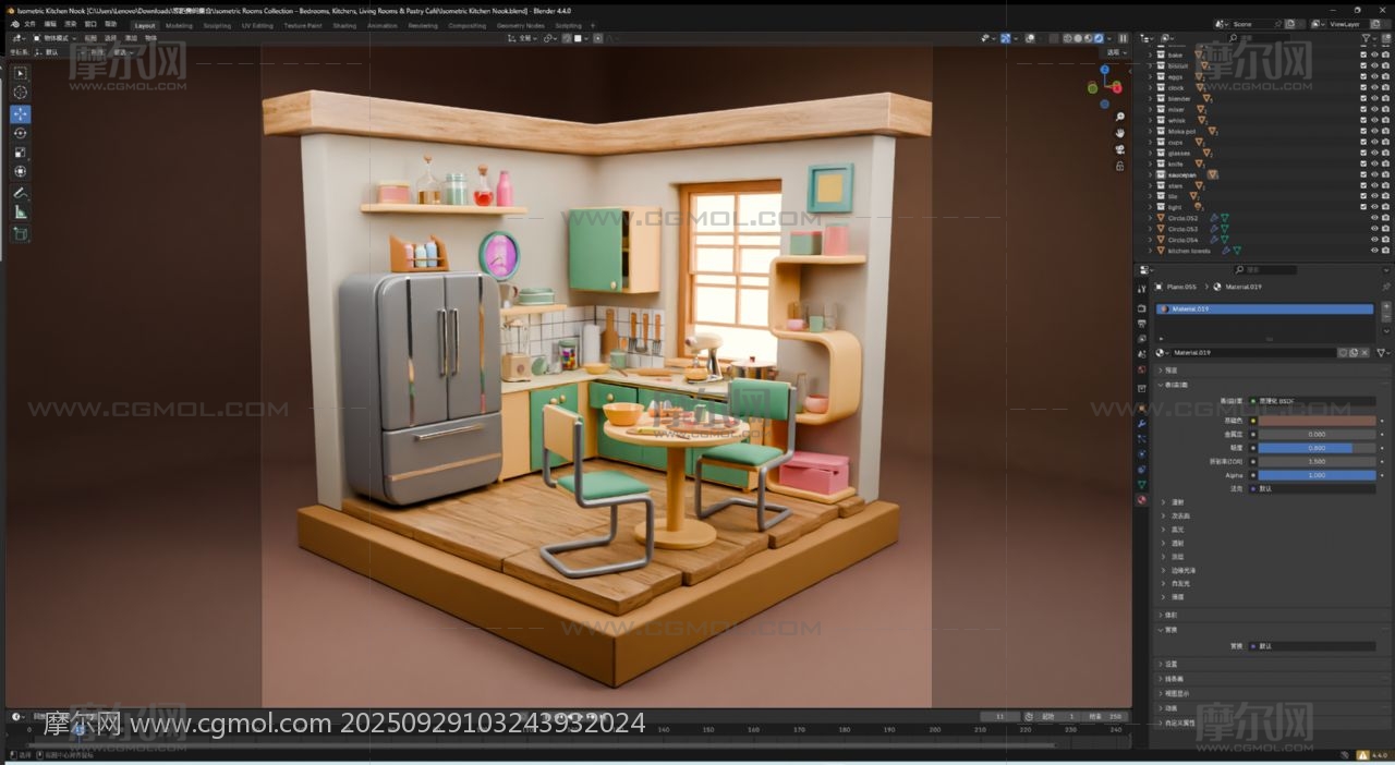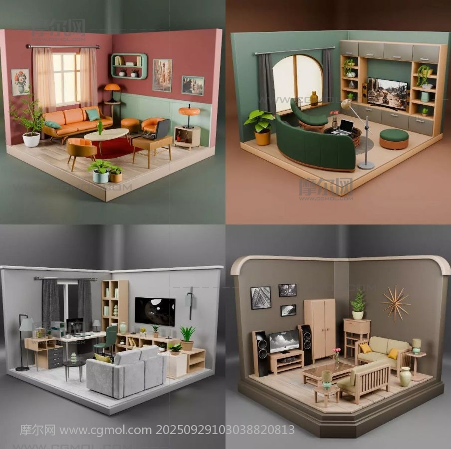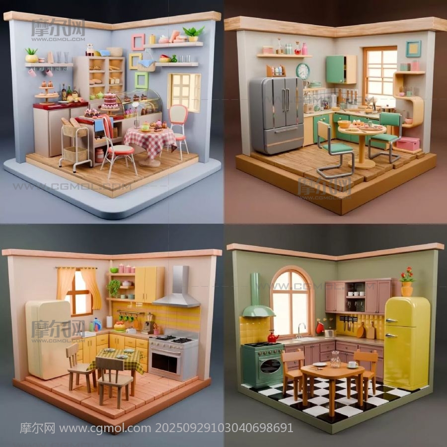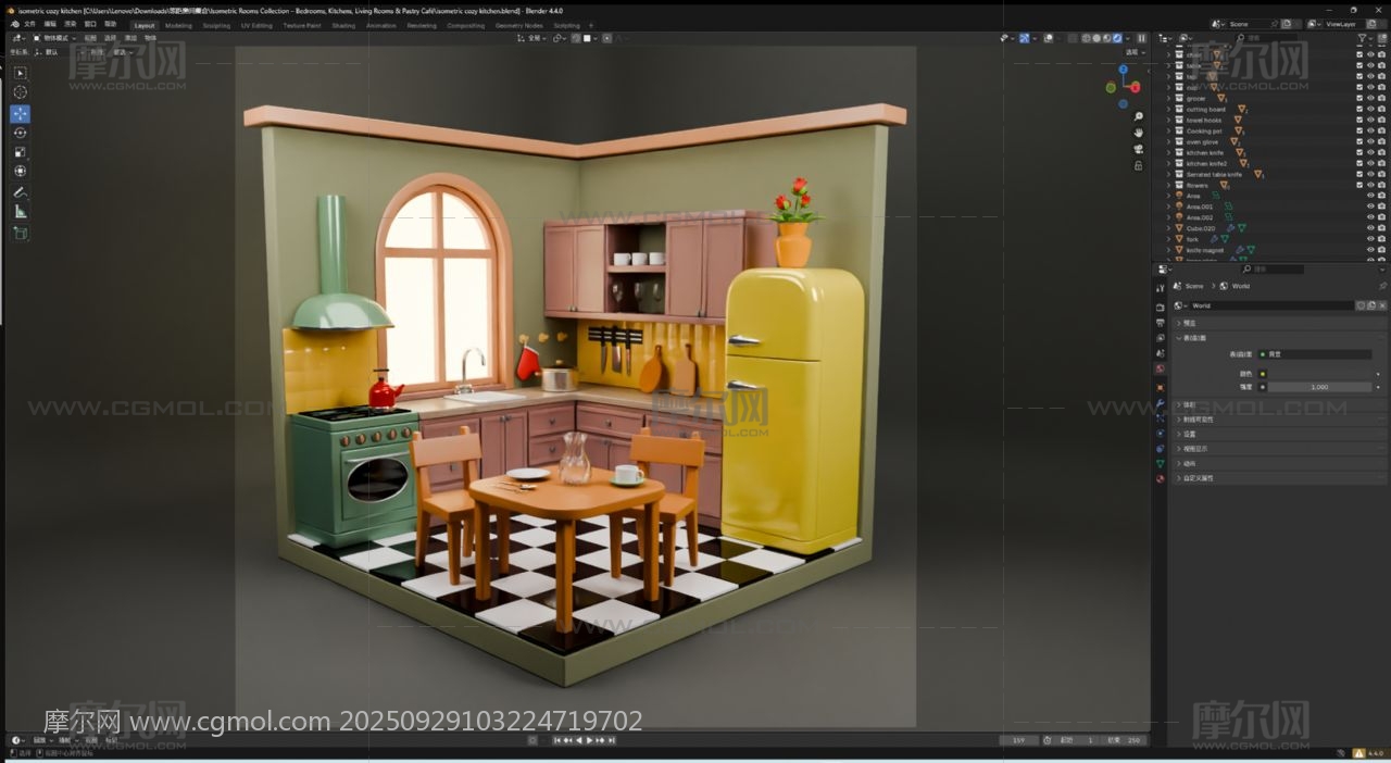 等距房间系列 卧室 厨房 客厅 卡通厨房 卡通客厅 blender
