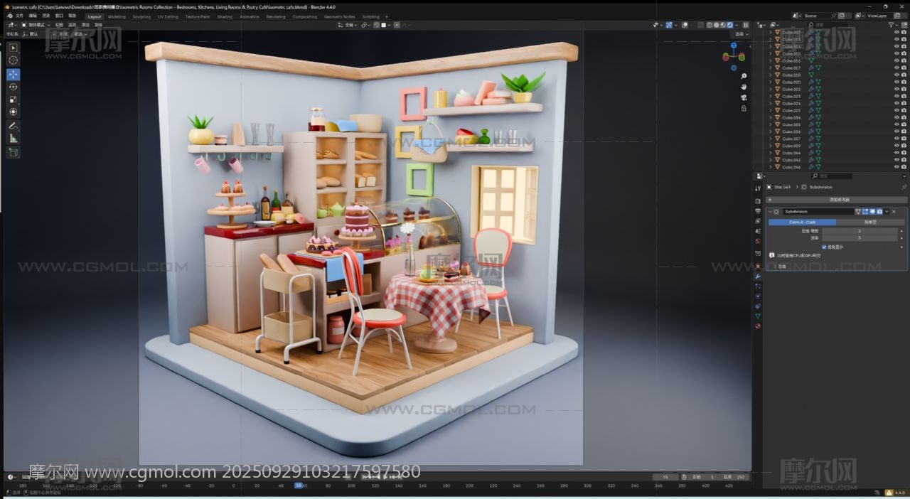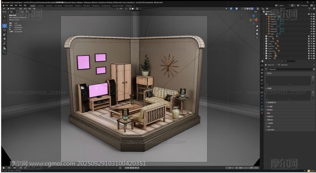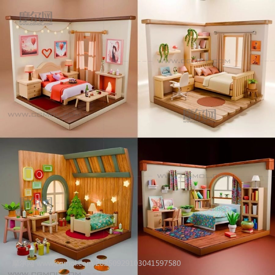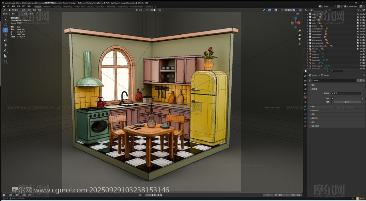 等距房间系列 卧室 厨房 客厅 卡通厨房 卡通客厅 blender