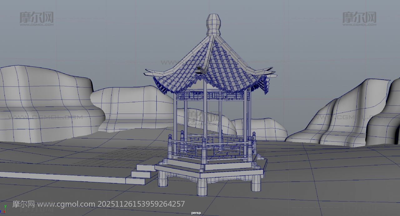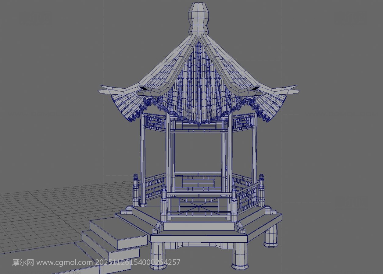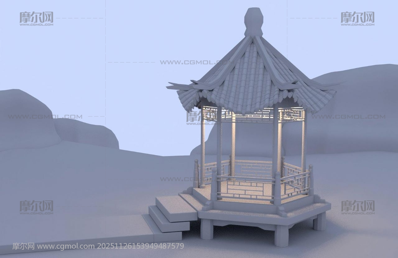 凉亭 六角亭 亭子 中式建筑 传统建筑 古代建筑 仿古建筑 maya fbx obj