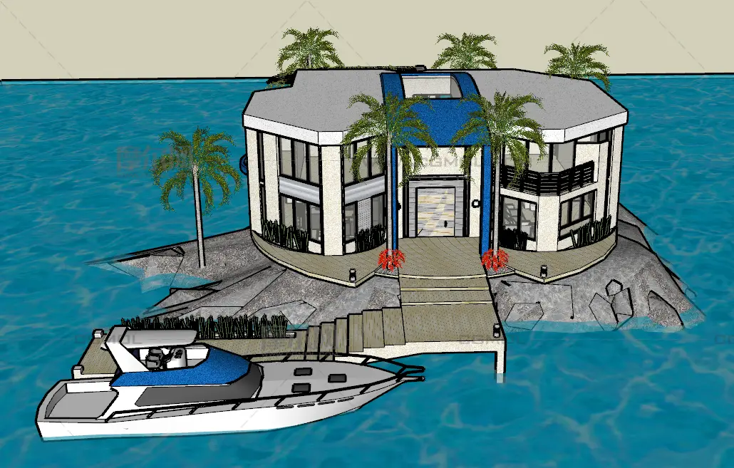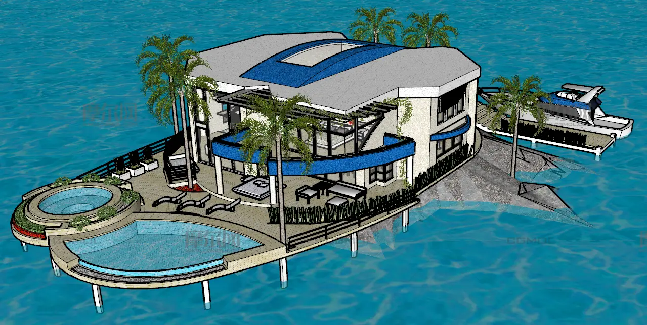 度假小岛 度假酒店 海边酒店 海边别墅 豪宅 住宅 sketchup